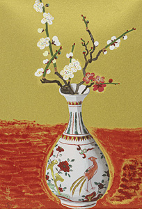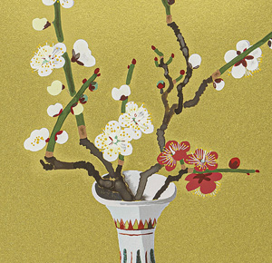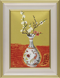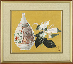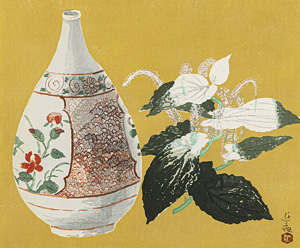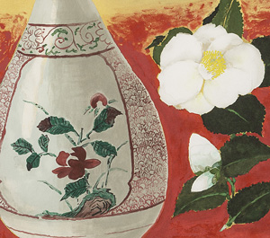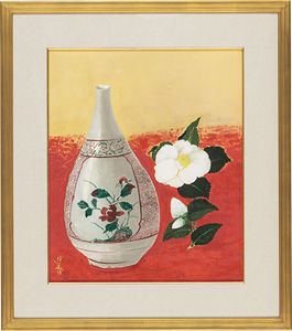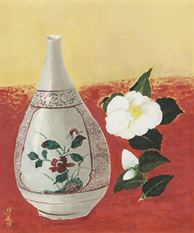 - Ko-Kutani sake bottle and white camelia (a set of 3)