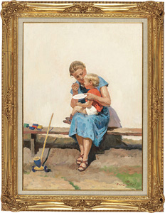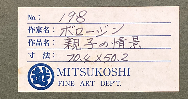 ■NOTE: also signed, titled and dated on verso, with a sticker of GEKKOSO (titled Mother and Child), with a sticker of MITSUKOSHI,