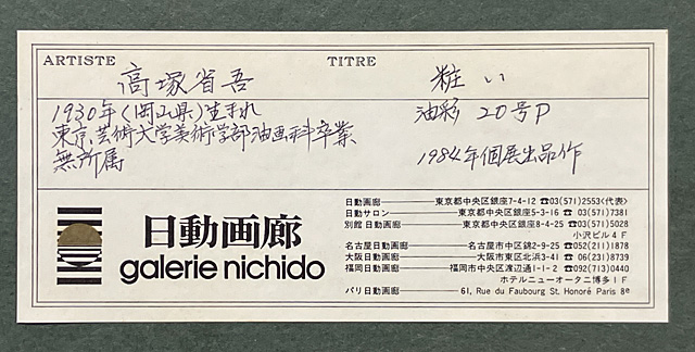 ■NOTE: also signed and titled on verso, with a sticker signed and titled by the artist, with a sticker of NICHIDO GARO