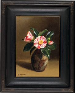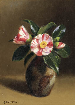 [Lot0079] camelia and Bizen pot, mountain in autumn