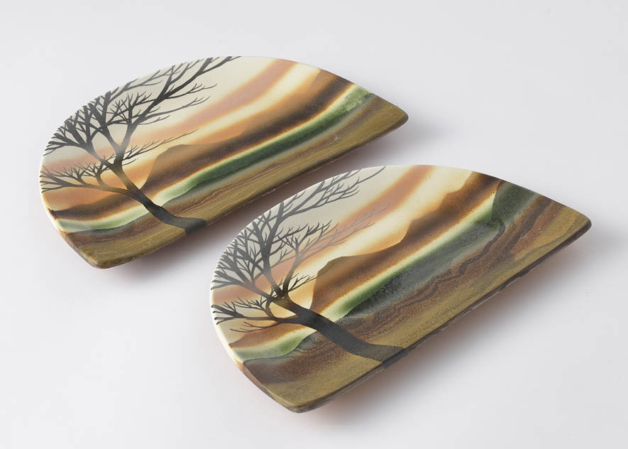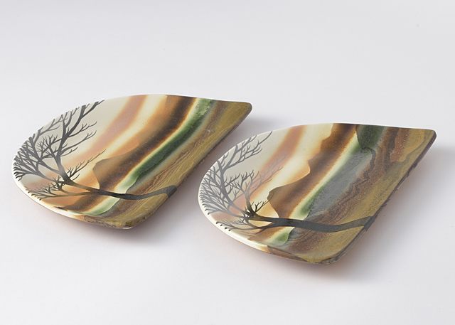 [Lot0170] plate depicting Mt. Nantai (a set of 2)