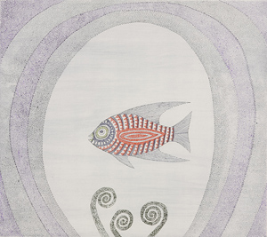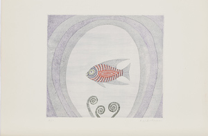 ■title: Poisson rouge et feuilles