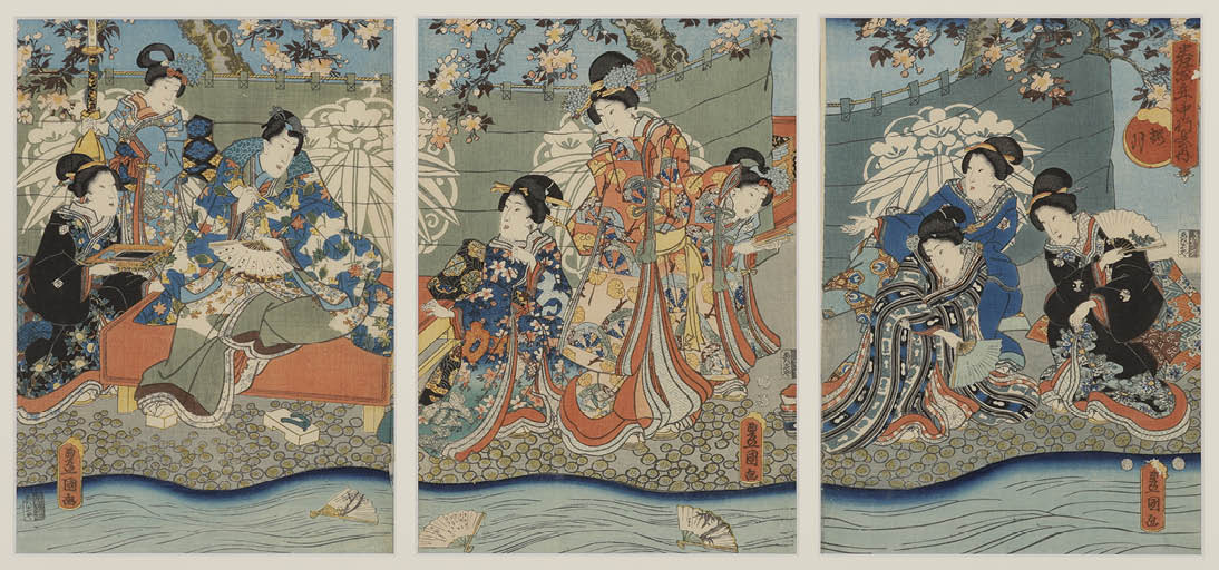 - Wakamurasaki Nenchugyoji no uchi, Sakura zuki (triptych) (a set of 3)