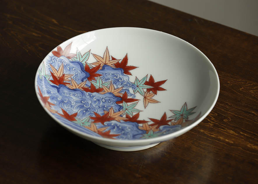 - Nabeshima footed plate depicting wave and Momiji leaf