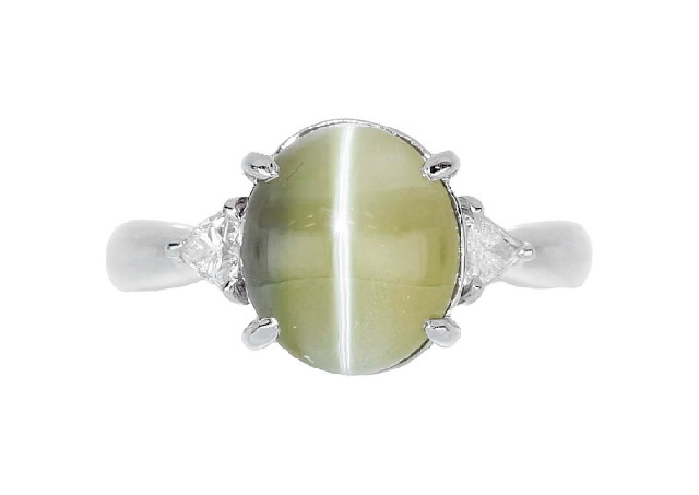 [Lot2100] Chrysoberyl Cat's Eye Diamond Ring
