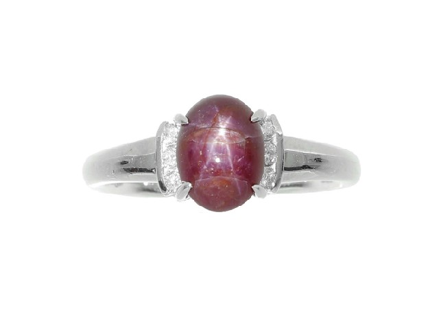 [Lot2122] Purple Star Sapphire Diamond Ring