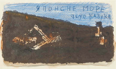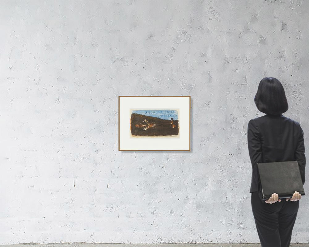 watercolor and crayon on offset, 25x44cm, with a sticker of Galerie Humanite, framed.