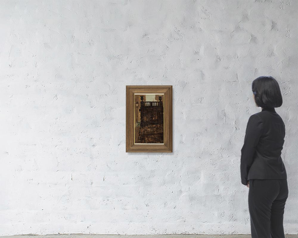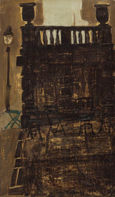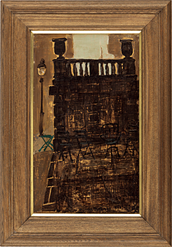 oil on canvas, 45.6x27cm, signed and titled at lower right image, also signed on verso, with a sticker of OSAKA Formes Gallery, with a sticker of "KAZUKI Yasuo Stay in Europe" (OSAKA Formes Gallery, 1957), framed.
