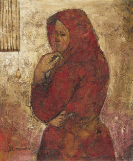1990, oil on panel, 72.8x61cm, signed at lower left image, also signed, titled and dated on verso, framed.