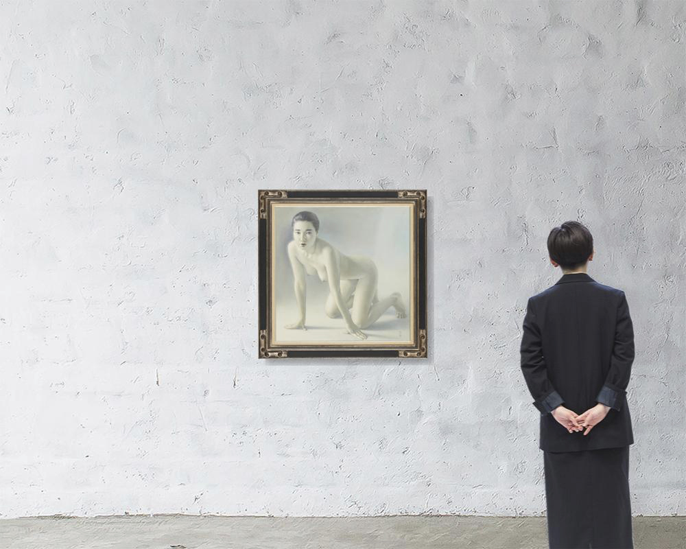 oil on canvas, 72.7x72.7cm, signed and sealed at lower right image, also signed and titled on the stretcher, with a sticker signed and titled by the artist, framed.