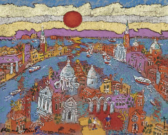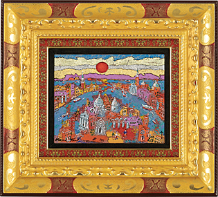 mixed media on canvas, 22x27.3cm, signed at right and left image, also signed, sealed with a thumb-print and titled on verso, framed.