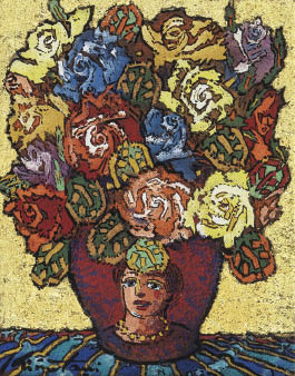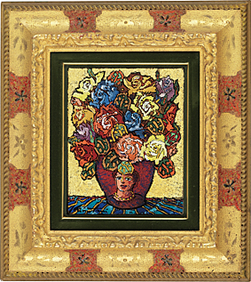 2002, mixed media on canvas, 24x19cm, signed at lower left image, also signed, sealed with a thumb-print and titled on verso, framed.