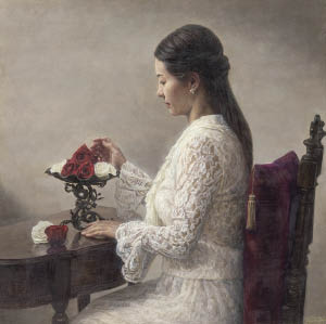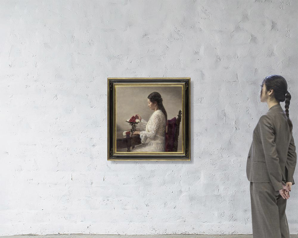 oil on canvas, 60.7x60.7cm, signed at lower right image, also signed and titled on verso, framed.
