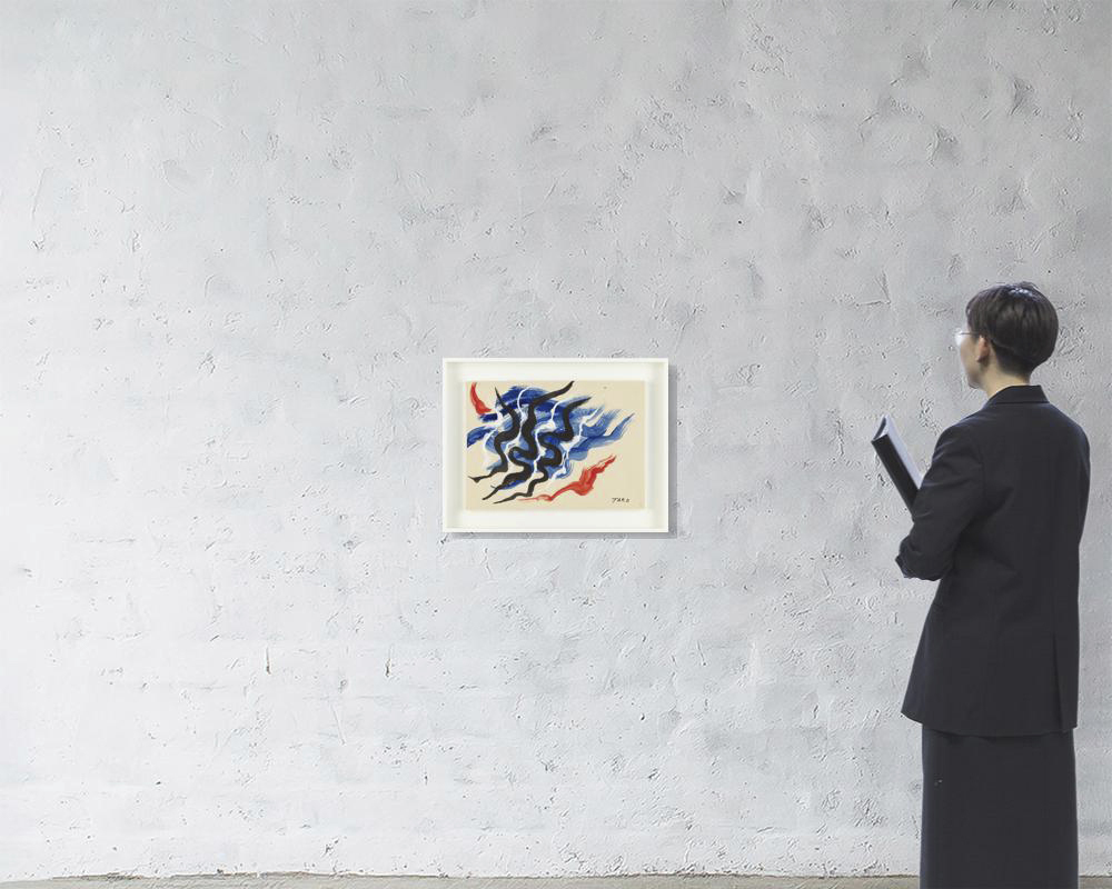 gouache on Japon, paper size 31x43.5cm, signed at lower right image, framed.* *Not examined out of frame.