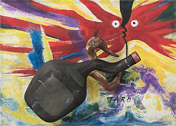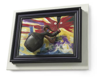 oil and object on canvas laid down to panel, H34.5xW47.6x11.8cm, signed at lower right image, framed.