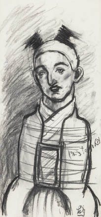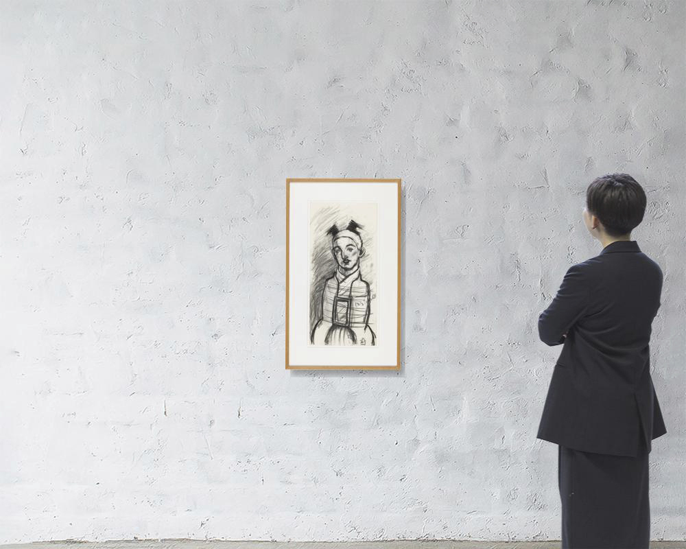 charcoal on paper, paper size 56.4x26.5cm, signed at lower right image, framed.