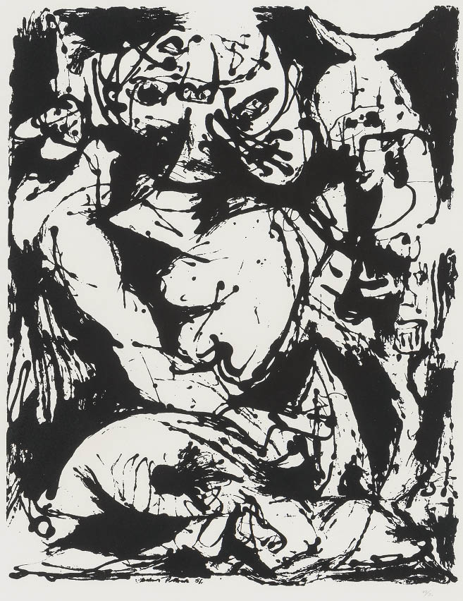 screenprint, 55x42cm, sheet size 73.7x58.5cm, signed on plate at lower center image and ed.50 in the lower right margin, with a blind stamp "ESTATE OF JACKSON POLLOCK", framed.* *Not examined out of frame.