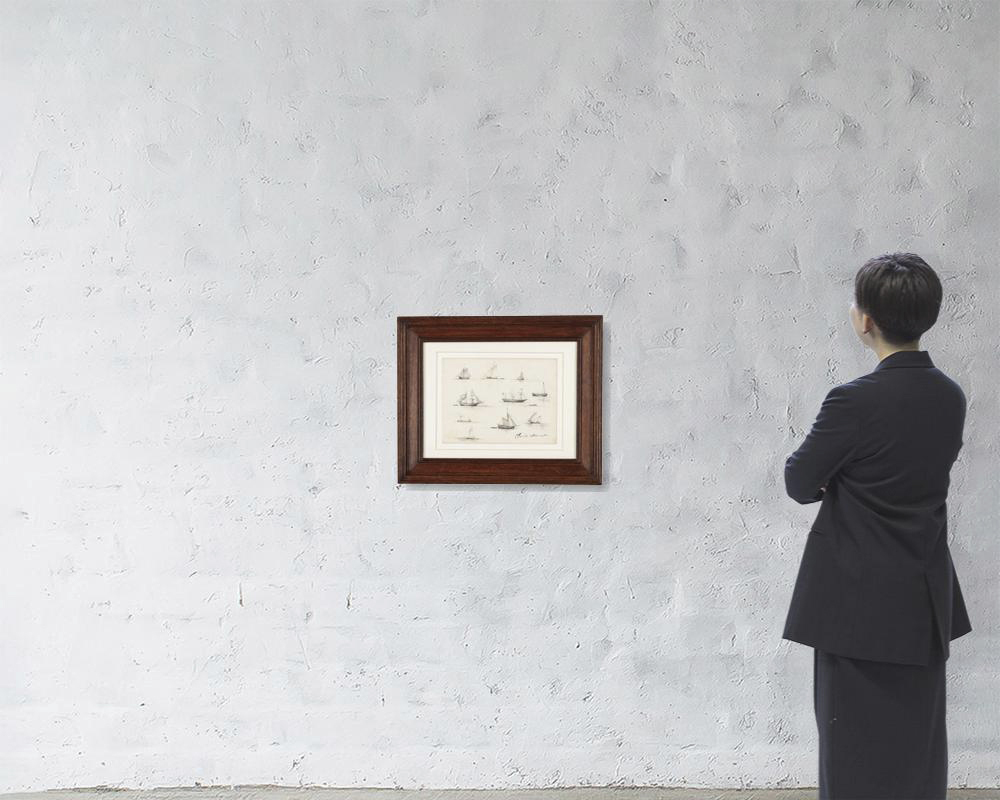 1857, pencil on paper, paper size 23x31cm, stamp-signed at lower right image, framed.