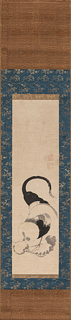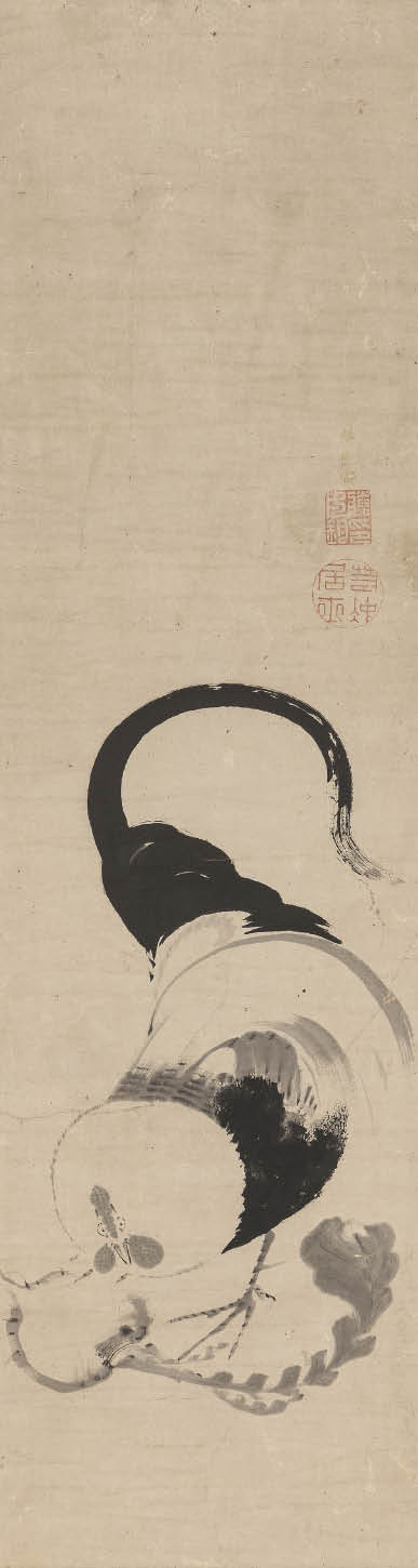 ink on paper, 102.5x27.7cm, sealed at center right image, mounted for scroll, with a box.