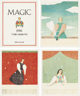 Shinchosha Print 27-30, 1981, lithograph, each sheet size 54x43cm (with full margins), all signed and dated in the lower right margin, ed.81 in the lower left margin, published by Yayoi Gallery, with 3 sticker of Toshio Arimoto Print Registration Committee, with an original case.