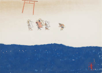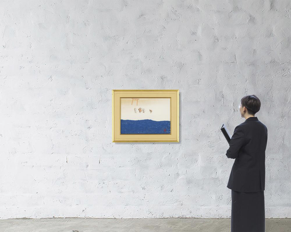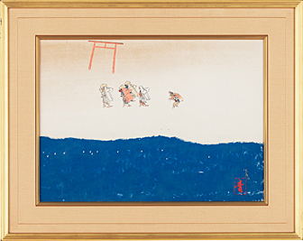 ink and color on paper, 45.8x63.6cm, signed and sealed at lower right image, with a wooden box signed by the artist, framed.