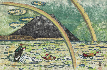 color on canvas board, 52.9x80.2cm, signed and sealed at lower right image, framed.