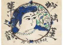 1951-1956, ink and color on silk, 40.5x50.9cm, signed and sealed at lower left image, with a wooden box signed by the artist, framed.