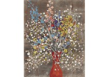 1997, color on golden silk, 45.5x53cm, signed and sealed at upper left image, with a sticker signed and titled by the artist, framed.