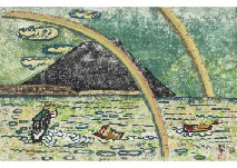 ink and color on paper, 45.5x53cm, signed and sealed at lower right image, with a sticker signed and titled by the artist, framed.