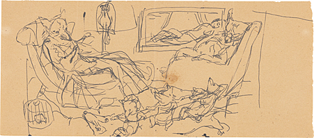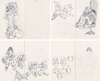 1 sketchbook containing 4 ink on papers and 3 ink on papers, sketchbook/book size 19x13cm, ink on paper/paper size 5.4x11.3-14x31.6cm, all not framed.