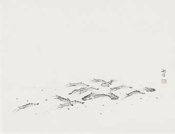 ink and watercolor on paper, 41x53cm, signed and sealed at center right image, with a wooden box signed by the artist, framed.
