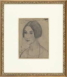 1925, pencil on paper, frame window size 27x20cm, signed and dated at lower left image, with a dedication at upper left image, framed.
