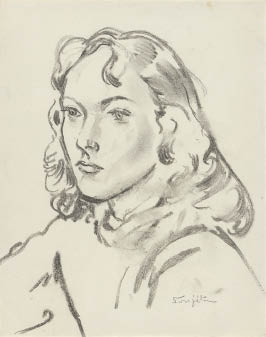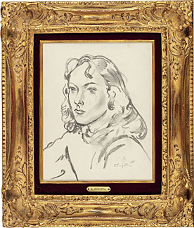 charcoal on paper, paper size 29.7x23.3cm, signed at lower right image, with a sticker of Galerie Tamenaga, framed.