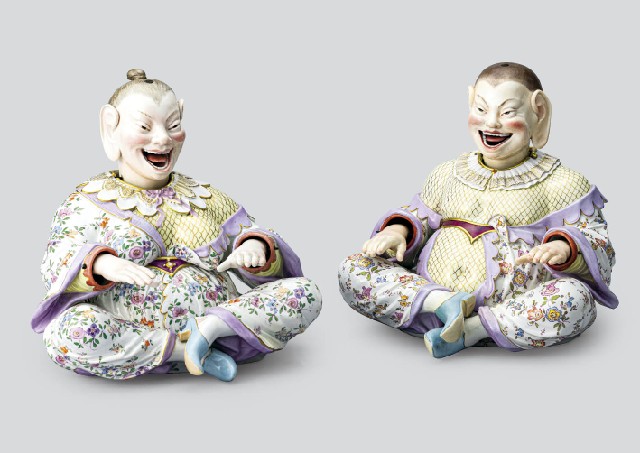 - prior to 1924, figure, Woman/H31.8xW32.8x32.8cm, model no.2884, Man/H31.6xW32.5x33.2cm, model no.2883, modelled by Kaendler, each marked on the bottom.