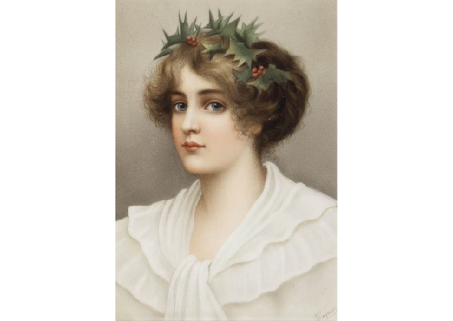 - Porcelain plaque "Woman with Holly Crown"