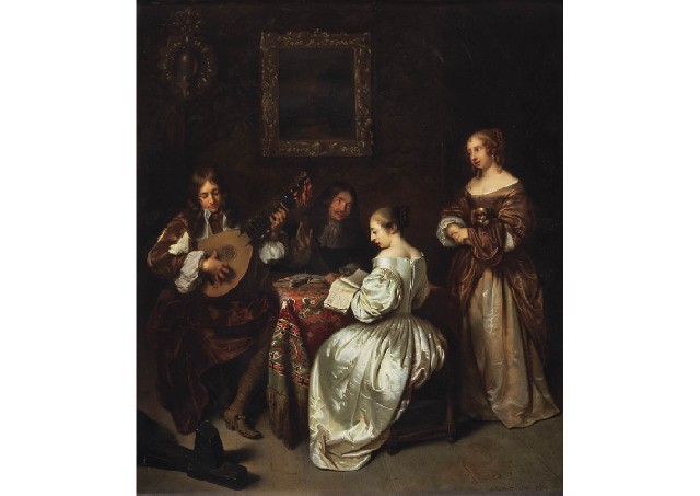 - 42.7x36.8cm, originally painted by Caspar NETSCHER, signed "O. Wustlish, 1864" by painter at lower right image, marked on the back, framed.