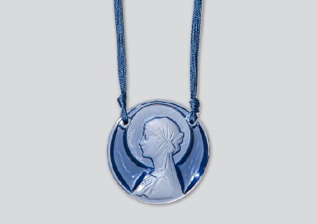 - Marcilhac C, designed in 1930, D4.7cm, blue glass, signed "R. L." on the back.