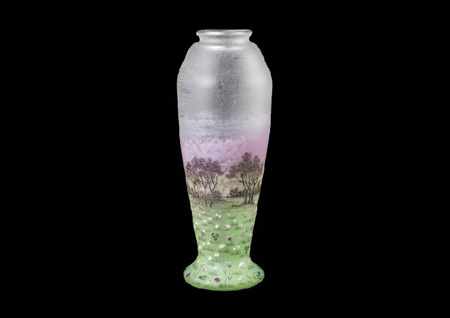 - H31cm, verre marmoreen, acid-etched, enamelled, signed in gilt on the bottom.
