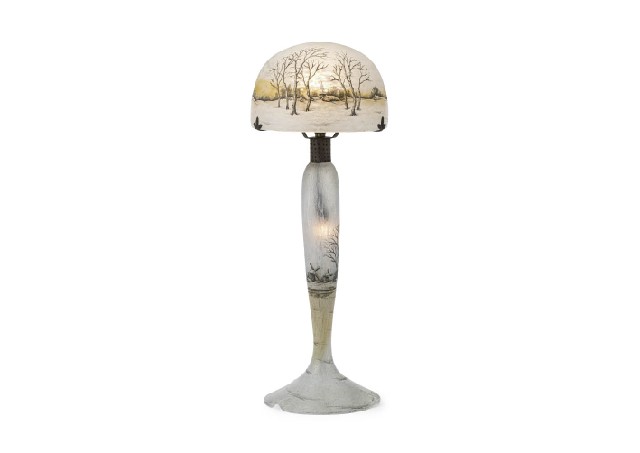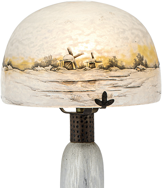 - H49xD18.4cm, verre marmoreen, vitrification, acid-etched, enamelled, signed in enamel on the bottom of the body.