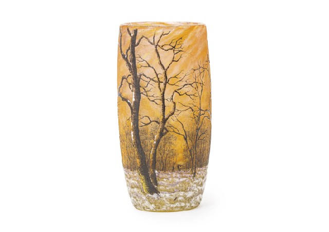 - H12.7cm, verre marmoreen, acid-etched, enamelled, signed in enamel on the bottom.