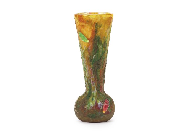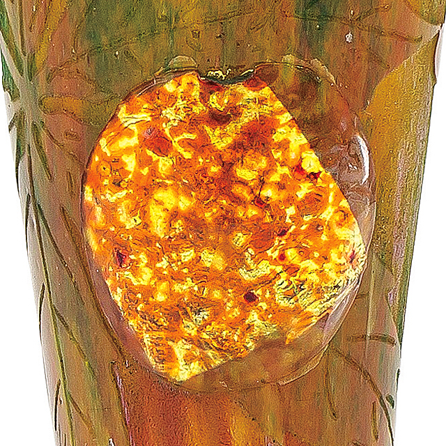 - H16.4cm, verre marmoreen, vitrification, foil sandwiched in cabochon, acid-etched, engraving, signed on the bottom.
