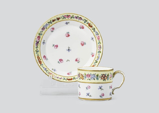 - circa 1775-1800, C/D5.7cm, S/D11.4cm, each each marked with a painter's mark on the bottom, [François DRAND:1764-1780 enrollment].