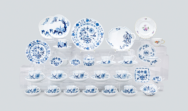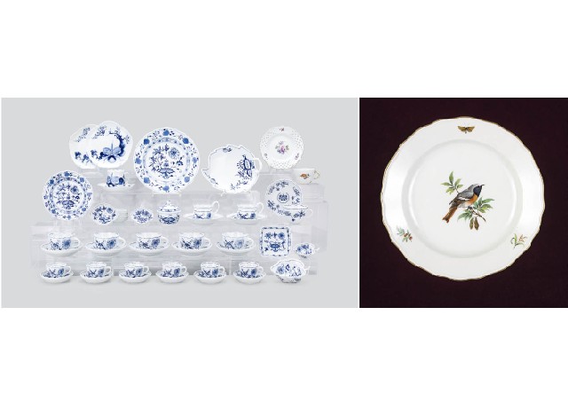 - sugar pot/H8.7cm, 16 various cups/D6.5-9cm, 15 various saucers/D10.8-14.8cm, 4 various plates/D18.7-25.5cm, pierced plate/D18.5cm, plate/D20.5cm, framed. *Not examined out of frame, 1 various bowls1/H3.3xW9x7.1-H6.1xW22.5x19.4cm, each marked on the bottom.
