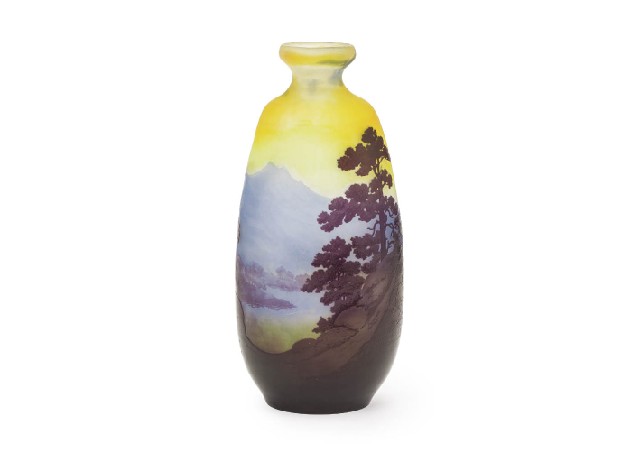 - H35.4cm, cameo glass, acid-etched, signed on the side.
