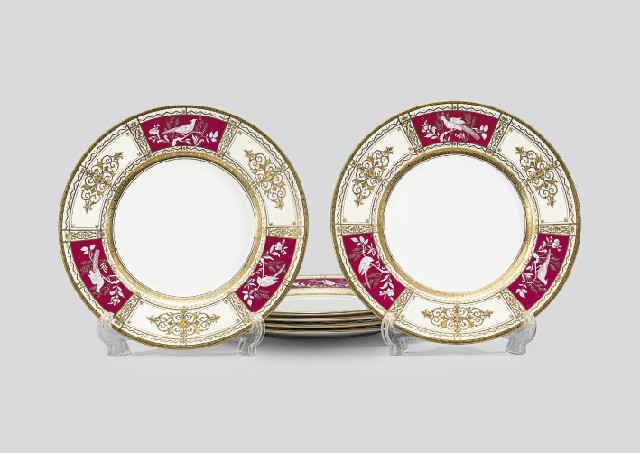 - D27.3cm, signed "S. A" on each image, each marked on the bottom.