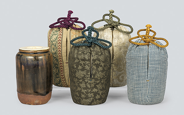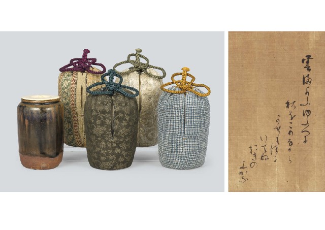 - "Old Seto tea caddy"/H8.1xW5.5cm, with a box, with 4 shifuku, KOBORI Masataka "Calligraphy"/ink on paper, mounted for a scroll, paper size 23.6x14.3cm, total size 129.3x34.2cm, with a box with kakitsuke by KOBORI Sokei.