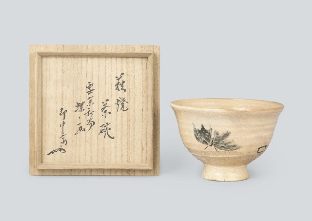 - Hagi tea bowl with painting of butterfly by MARUYAMA Denne