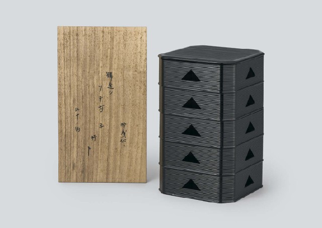 - Five tiered square container for confectionery with design of triangle pattern (with konomi kakitsuke by SOKUCHUSAI)
