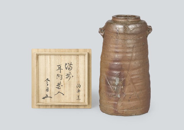 - H23.5xW12.2cm, marked underneath, with tomobako(the box signed by the artist), with kakitsuke by HOUNSAI.