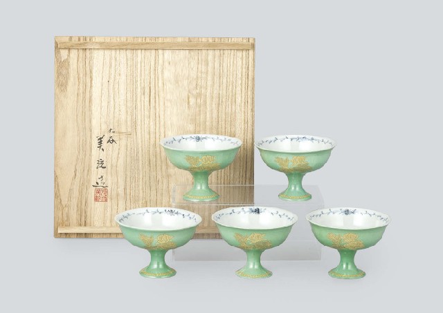 - each size H7.5xW11cm, each marked inside the foot-ring, with tomobako(the box signed by the artist).